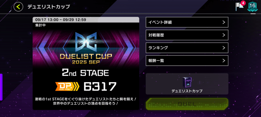 セカンドステージも終わったため、マスターデュエルのデュエリストカップ(DC)に挑戦した結果を。